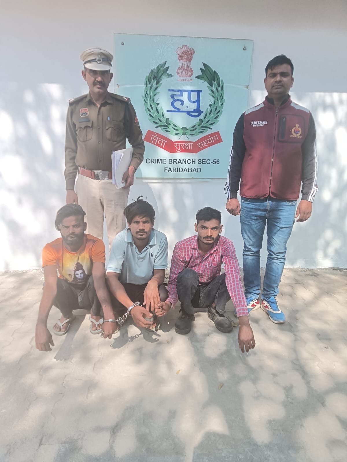 22/23 फरवरी की रात को थाना मुजेसर क्षेत्र के अंतर्गत शिव कॉलोनी में हुआ था लड़ाई झगड़ा क्राईम ब्रांच सेक्टर 56 की टीम ने 3 आरोपितों को किया गिरफ्तार, पुलिस रिमांड लेकर की जा रही है पूछताछ फरीदाबाद- फरीदाबाद पुलिस द्वारा अपराधियों पर लगातार कार्रवाई की जा रही है। 22 23 फरवरी की रात को थाना मुजेसर के अंतर्गत शिव कॉलोनी में हुये लडाई झगडा के मामले में क्राईम ब्रांच सेक्टर 56 की टीम ने संदीप(19), राजेश(24) व विष्णु(22) वासी शिवाजी नगर सेक्टर-22 फरीदाबाद को गिरफ्तार किया है। पुलिस प्रवक्ता…