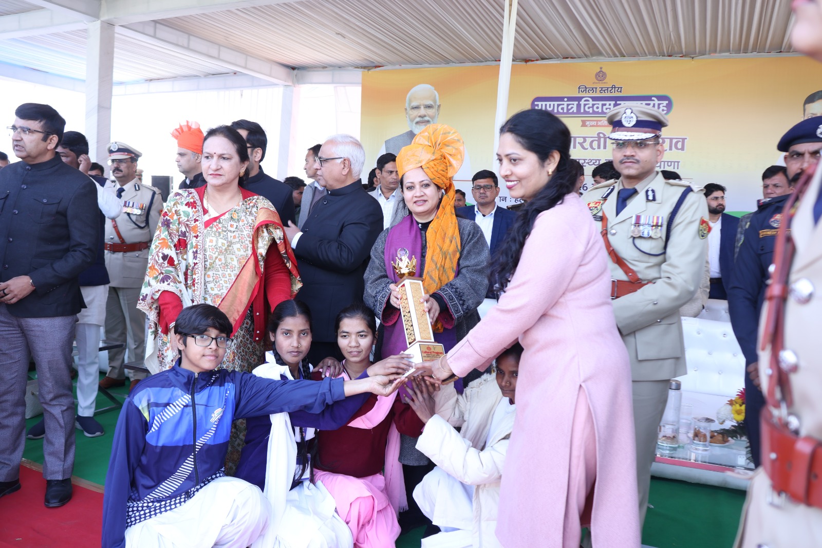 Read Moreहरियाणा की स्वास्थ्य मंत्री आरती सिंह राव ने उत्कृष्ट प्रदर्शन करने वाले विभागीय प्रतिनिधियों को किया सम्मानित फरीदाबाद, 26 जनवरी।77वें गणतंत्र दिवस के अवसर पर फरीदाबाद में जिला स्तरीय समारोह का गरिमामयी भव्य आयोजन किया गया। इस अवसर पर हरियाणा की स्वास्थ्य मंत्री सुश्री आरती सिंह राव ने ने अपने-अपने क्षेत्रों में विभिन्न विभागों के उत्कृष्ट प्रदर्शन करने वाले प्रतिनिधियों और गणत्रंत दिवस परेड में भाग लेने वाले विभागों को सम्मानित किया। स्वास्थ्य मंत्री सुश्री आरती सिंह राव ने सभी सम्मानित प्रतिनिधियों को प्रमाणपत्र प्रदान किए। यह हुए सम्मानित :डीसी…