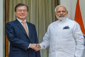 प्रधानमंत्री नरेन्द्र मोदी एवं दक्षिण कोरिया के राष्ट्रपति मून जेई इन ने दोनों देशों के विशेष सामरिक संबंधों को और अधिक मजबूत बनाने पर जोर दिया तथा इन्हें आगे बढ़ाने के लिये चार समझौतों पर हस्ताक्षर किये । प्रधानमंत्री मोदी ने भारत की पहली यात्रा पर आए दक्षिण कोरिया के राष्ट्रपति मून के साथ संबंधों के विविध आयामों पर विस्तृत चर्चा की ।मोदी ने कहा, ‘‘ हमने अपने द्विपक्षीय संबंधों की समीक्षा की और क्षेत्रीय एवं विविध वैश्विक विषयों पर चर्चा की । नीतिगत स्तर पर भारत की ‘एक्ट ईस्ट पालिसी’ और कोरिया गणराज्य की न्यू सदर्न स्ट्रैटेजी में स्वभाविक एकरसता है। मैं राष्ट्रपति मून के इस विचार का स्वागत करता हूं कि भारत और कोरिया के संबंध न्यू सदर्न स्ट्रैटेजी के आधार स्तम्भ हैं । ’’ दक्षिण कोरिया के राष्ट्रपति मून जे..इन ने कहा, ‘‘ हमने द्विपक्षीय सहयोग के नये युग की शुरुआत की है ।’’ दोनों देशों ने उन्नत समग्र आर्थिक गठजोड़ समझौते :सीईपीए: के तहत अर्ली हार्वेस्ट पैकेज पर संयुक्त बयान पर हस्ताक्षर किया । इसके मुताबिक, उन्नत सीईपीए के तहत जारी वार्ता को आगे बढ़ाना और इसके लिये झींगा, सीप, प्रसंस्कृत मछली जैसे क्षेत्रों में कारोबार उदारीकरण को आगे बढ़ाना है। भारत और दक्षिण कोरिया ने कारोबार उपचार के विषय पर भी एक सहमति पत्र पर हस्ताक्षर किये । इसके तहत एंटी डंपिंग, सब्सिडी, सहयोग समितियां स्थापित कर, विचार विमर्श और सूचनाओं के आदान प्रदान के जरिये सुरक्षा उपाए करने की बात कही गई है।