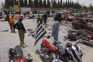 Hours after polling began for the general elections, an Islamic State suicide bomber blew himself up outside a polling station in Bhosa Mandi area of Balochistan’s provincial capital, Quetta, killing 31 people, including policemen.