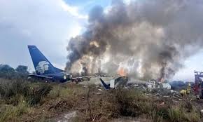 An Aeromexico flight crashed on takeoff during a heavy hail storm in northern Mexico, engulfing the plane in flames and injuring 97 people, officials said.