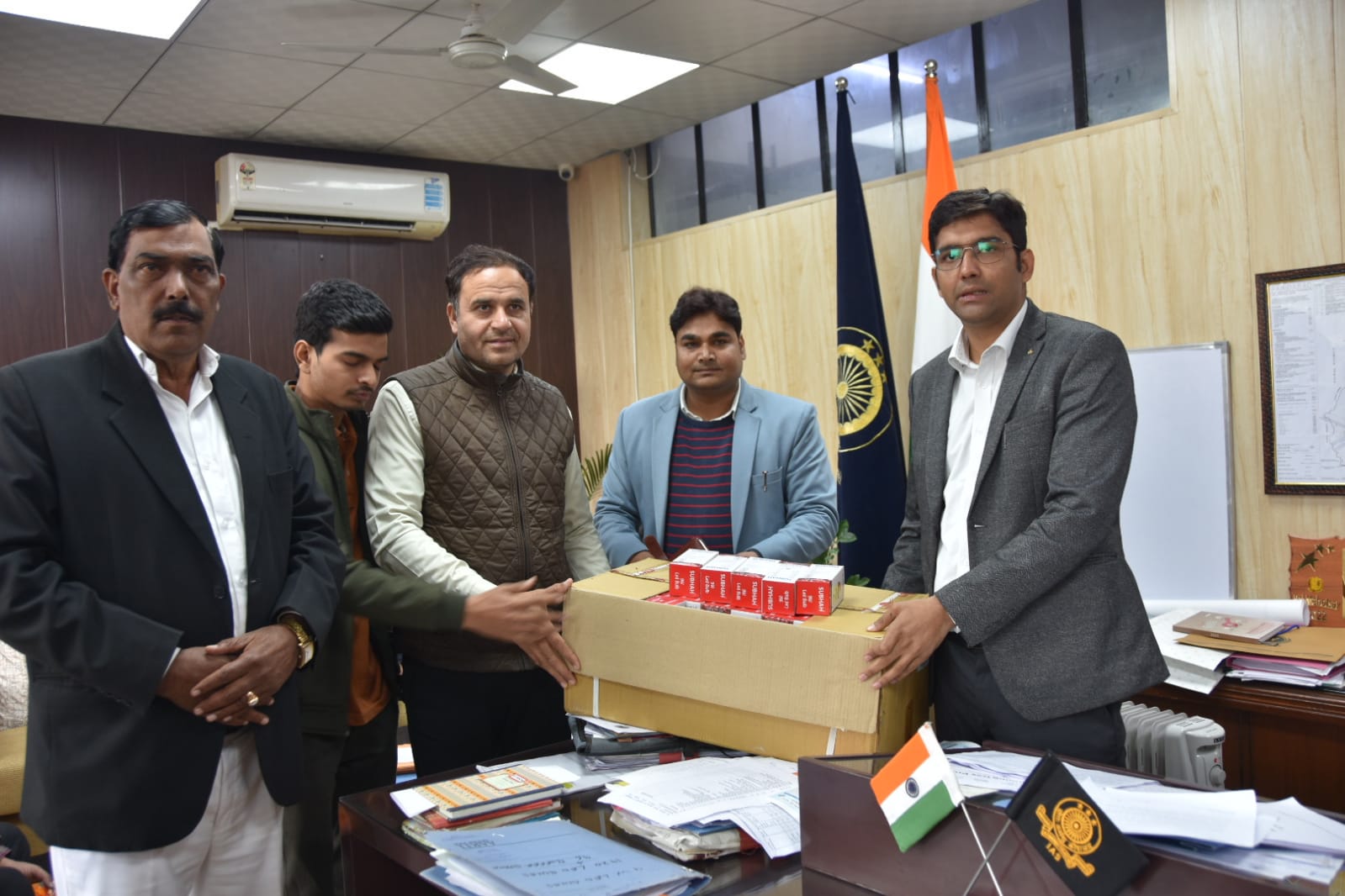 फोटो कैप्शन:- एडीसी आनन्द शर्मा एलईडी लाइट वितरित करते हुए।