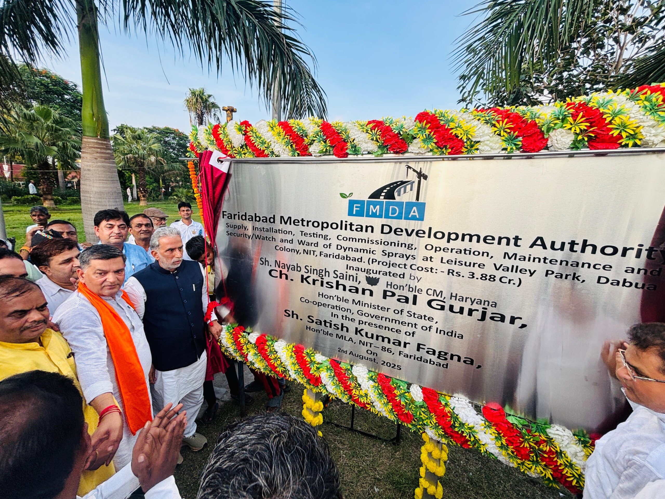 फरीदाबाद के एनआईटी-86 विधानसभा क्षेत्र की डबुआ कॉलोनी स्थित वार्ड नंबर 10 के लेज़र वैली पार्क में आज एक भव्य कार्यक्रम के तहत केंद्रीय सहकारिता राज्यमंत्री कृष्ण पाल गुर्जर ने रंगीन म्यूजिकल फव्वारों का उद्घाटन किया। यह परियोजना फरीदाबाद मेट्रोपोलिटन डेवलपमेंट अथॉरिटी (FMDA) द्वारा लगभग तीन करोड़ 88 लाख रुपये की लागत से विकसित की गई है और वर्ष 2028 तक इसकी देखरेख एवं मेंटेनेंस का कार्य भी इस फव्वारे का निर्माण करने वाली कंपनी द्वारा ही किया जाएगा।