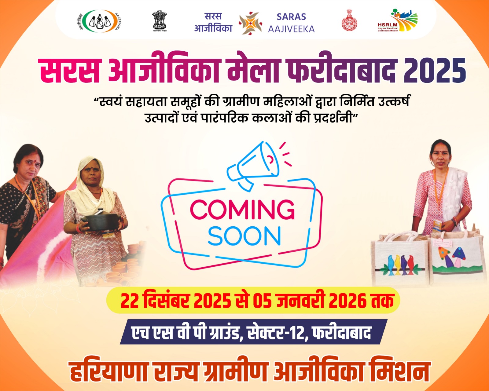 जिला परिषद फरीदाबाद की मुख्य कार्यकारी अधिकारी शिखा ने जानकारी देते हुए कहा कि हरियाणा सरकार के हरियाणा राज्य ग्रामीण आजीविका मिशन (HSRLM) ग्रामीण विकास विभाग द्वारा फरीदाबाद में सरस आजीविका मेला–2025 का आयोजन आगामी दिनांक 22 दिसंबर से 05 जनवरी 2026 तक एचएसवीपी ग्राउंड, सेक्टर–12 फरीदाबाद में किया जाएगा। यह मेला प्रतिवर्ष ग्रामीण महिलाओं को आत्मनिर्भर बनाने तथा स्वंय सहायता समूहों (Self Help Groups) द्वारा तैयार किए गए हस्तनिर्मित उत्पादों को एक सशक्त बाजार उपलब्ध कराने के उद्देश्य से आयोजित किया जाता है।